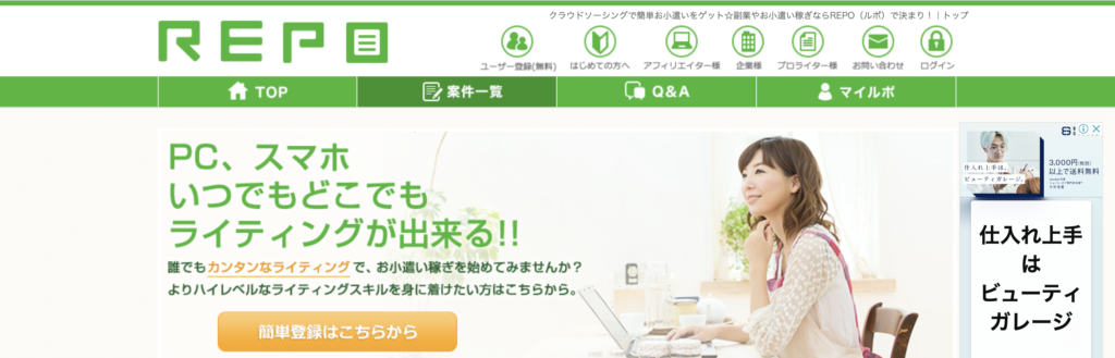 Repoもサグーワークスやshinobiライティングと同様にライティングに特化しており、記事納品から報酬までのシステムも類似しています。